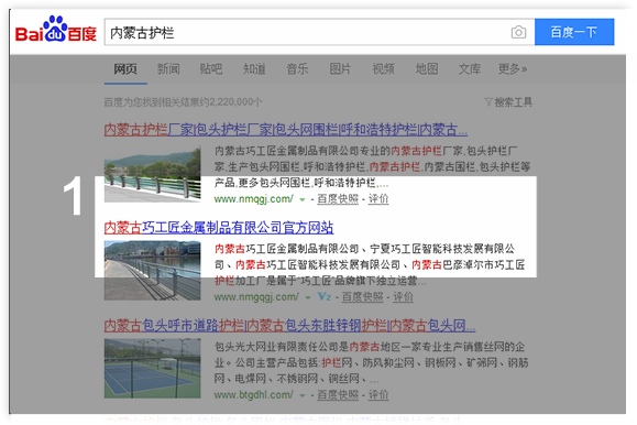 精诚所至金石为开!内蒙古巧工匠金属有限公司的关键词排名效果非常好,订单也是源源不断…从包头火车站,到齐鲁制药,从陕西三道沟煤矿,再到山西鑫宏运万里护栏工程,最终达成和中铁六局的长期合作,大客户一个接一个。在给企业带来了经济效益同时,也博得了巨大的社会声誉,公司于2016年下半年成功挂牌上市,标志了内蒙古巧工匠品牌走向全国的开始。陈总常开玩笑说,是你们二五八集团和百度帮助我们公司实现了挂牌上市,我平时很忙,但谁的电话都可以不接,只要是你们的营销专家我一定会接。
